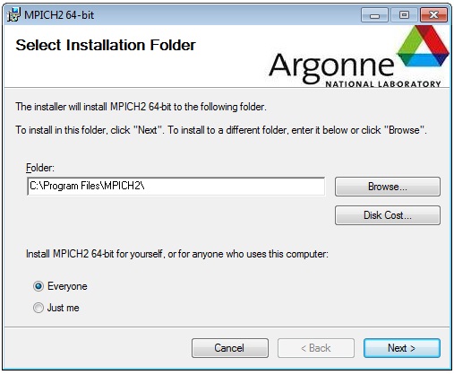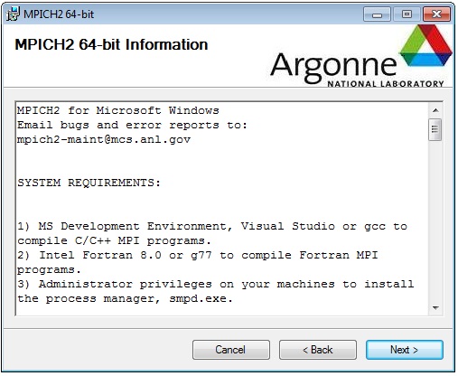 - MPICH: mpich2-1.4.1p1-win-x86-64.msi